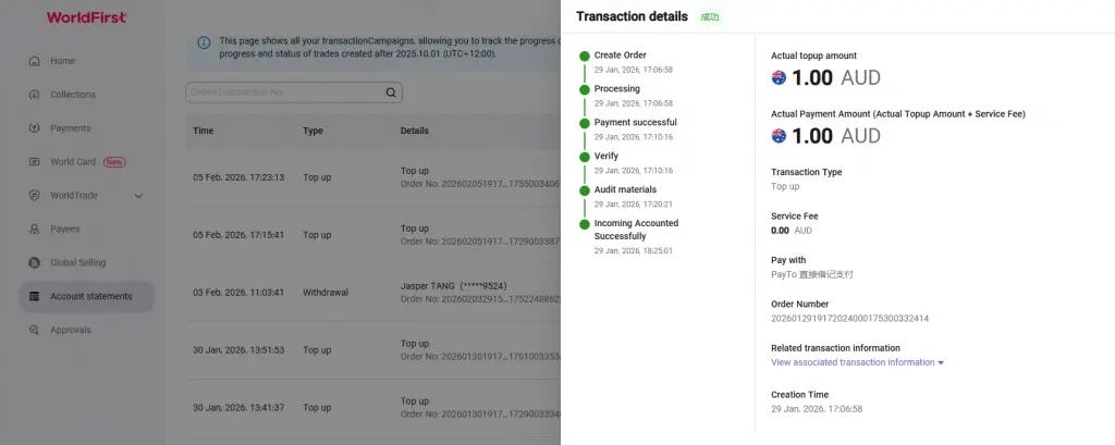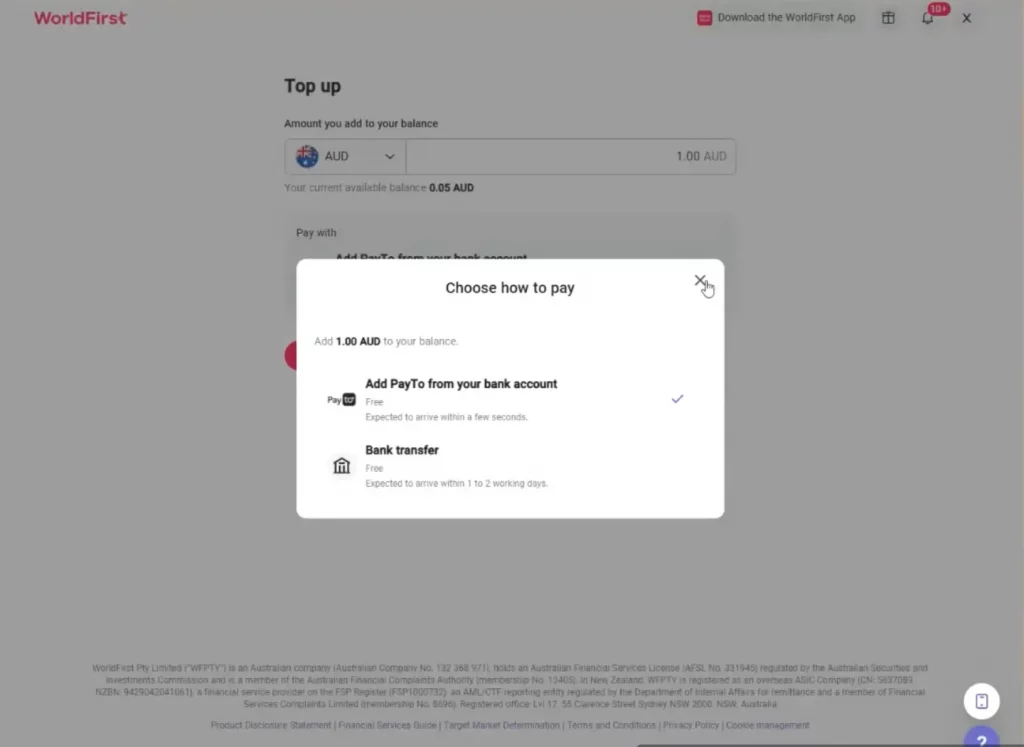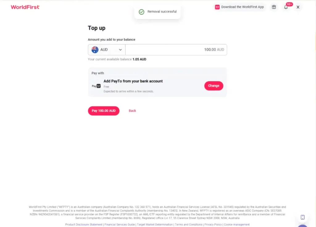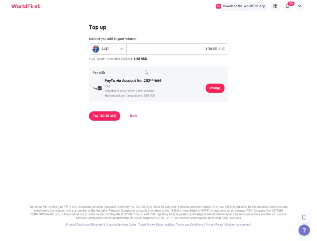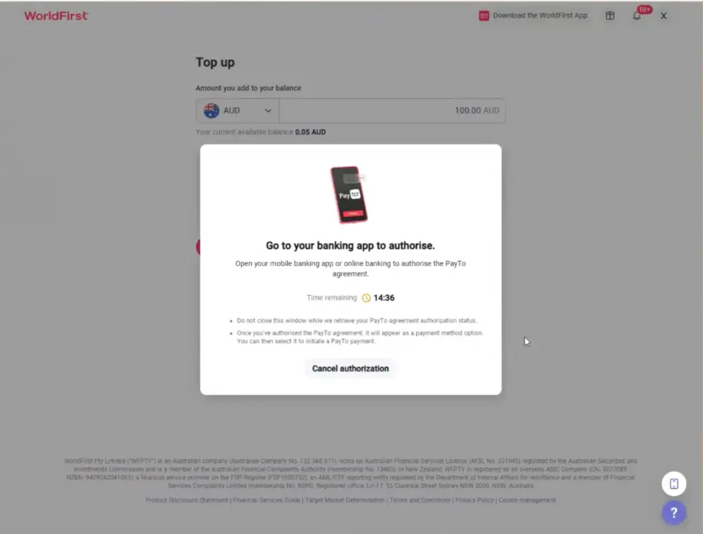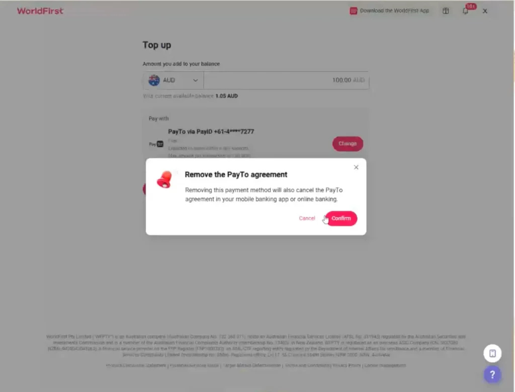 You can cancel your PayTo agreement at any time from your World Account. Once cancelled, you’ll no longer be able to add funds using PayTo unless you set up a new agreement.