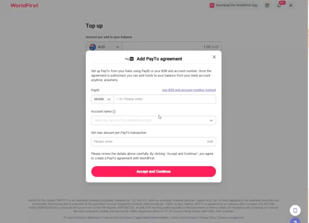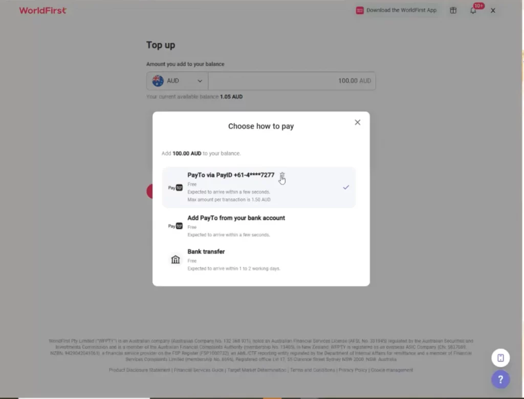 PayTo is part of Australia’s New Payments Platform (NPP), allowing you to securely authorise and pull funds directly from your bank account into your World Account. You’ll need to authorise a PayTo agreement with your bank to link your World Account.