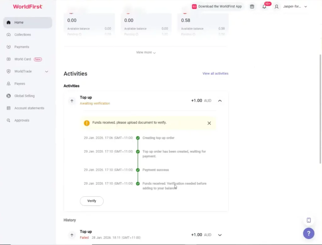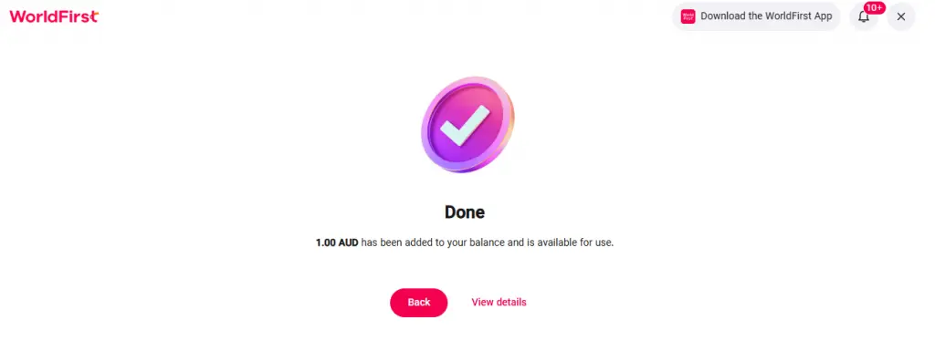 - Once the verification is processed, the funds will be available in your account.