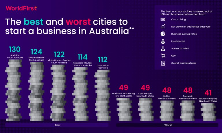 In light of these developments, payment solutions experts at WorldFirst have provided insight on Australian cities for entrepreneurs to start and run their businesses*. Seven economic factors have been analysed, including: