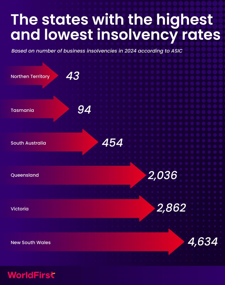 In 2024, 11,000 Australian businesses filed for insolvency. Broken down, that leads to 916 businesses per month or 229 per week, according to the Australian Securities and Investments Commission.