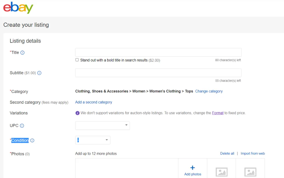 Note: A listing fee applies whether your item sells or not.