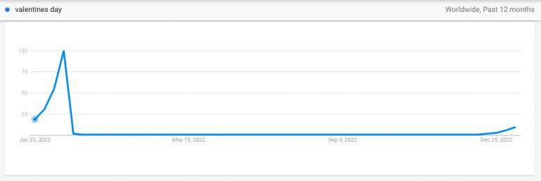 Google Search data shows that Valentine’s Day shoppers start browsing for gifts around the end of January (see below graph). This means you’ll need to be ready several weeks ahead of the event itself since consumers are already looking to plan or make purchases.