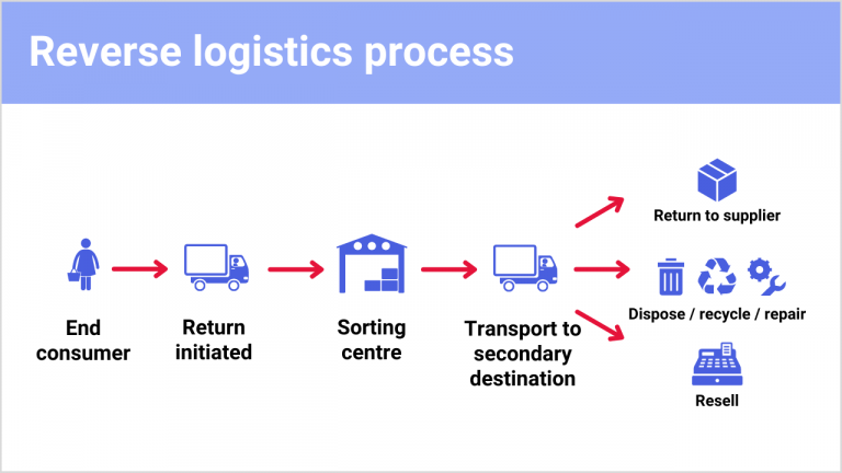 The reverse logistics process can run from the end consumer all the way back to the point of origin.