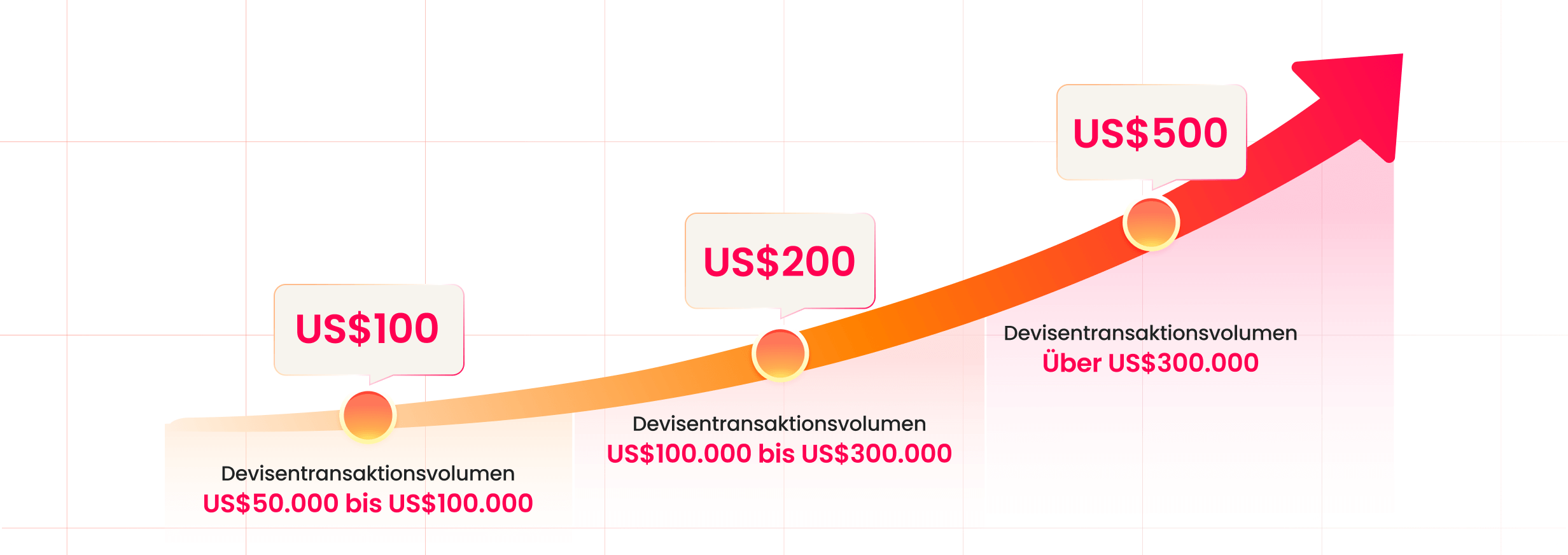 Wenn Ihre Empfehlung eine der oben genannten Basisaufgaben abschließt und Transaktionen in Fremdwährungen durchführt, erhalten Sie jeweils bis zu 500 USD zusätzlich.
