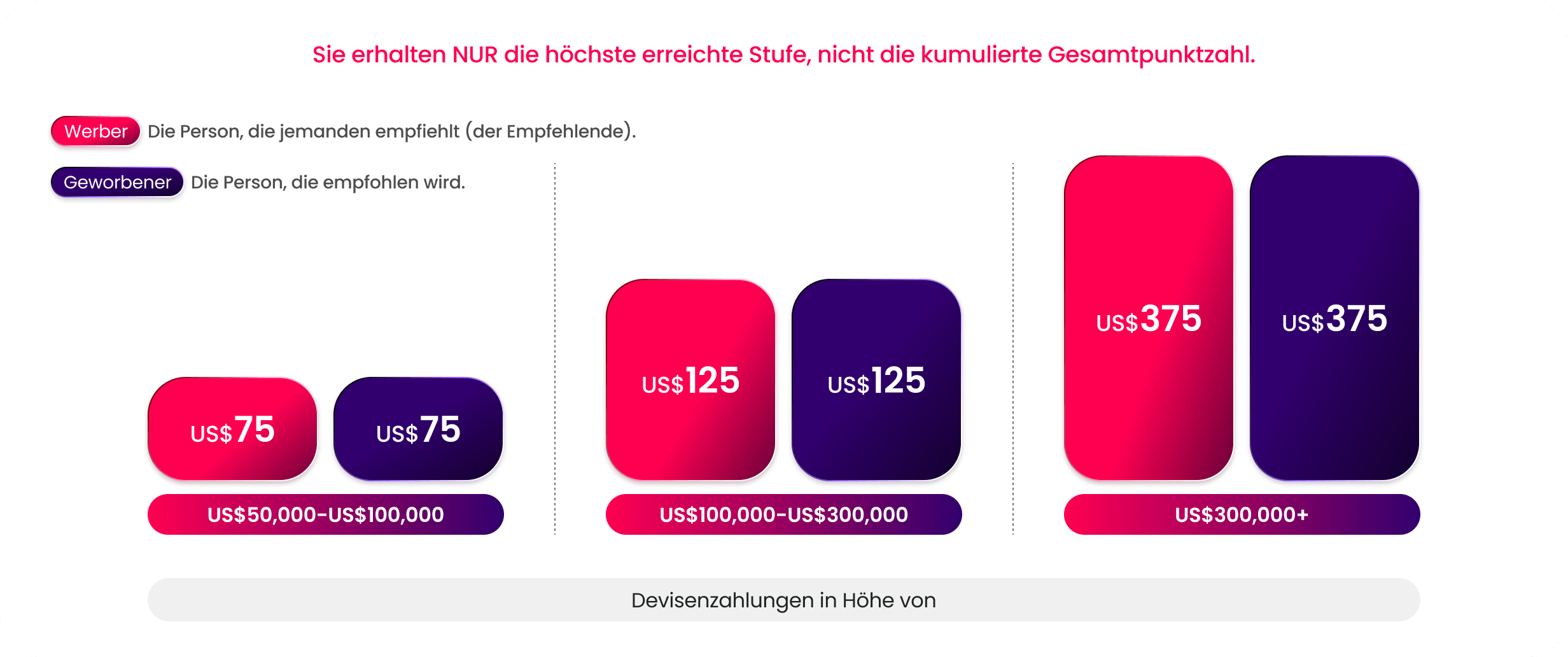 Sowohl Sie als auch Ihre Empfehlung erhalten jeweils bis zu 475 USD.