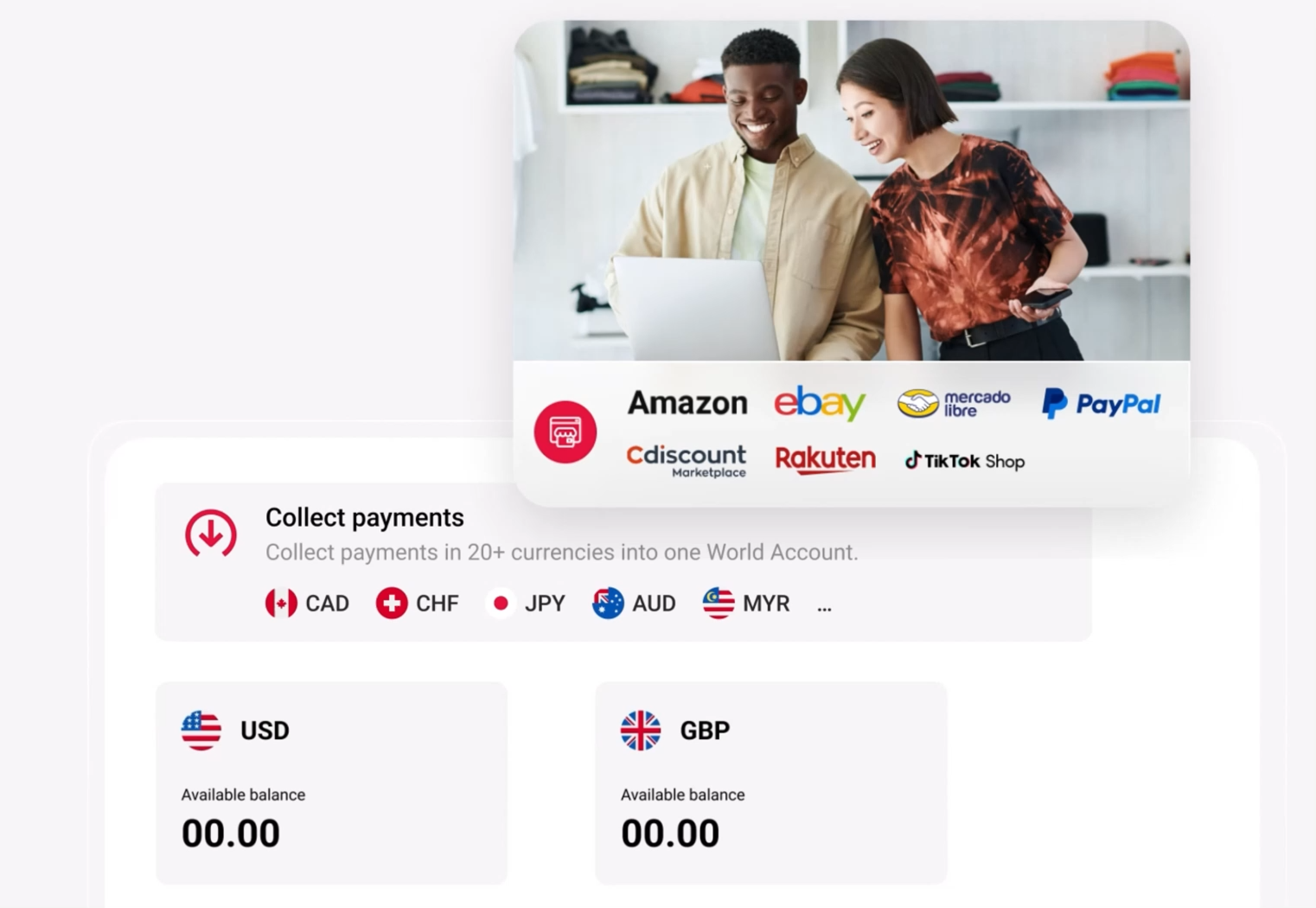 Receiving accounts allow your business to receive payments from marketplaces and businesses globally by providing them with your account details. You’ll be able to receive funds into your World Account via bank transfer.