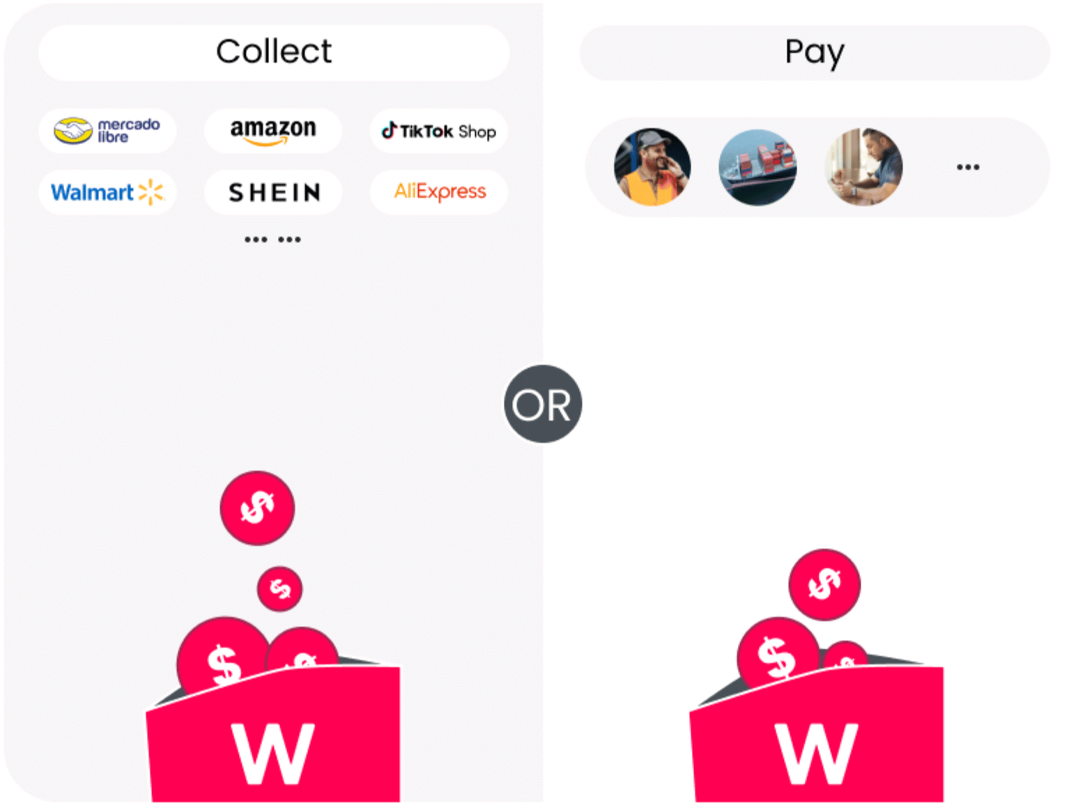 Recibe pagos de más de 130 marketplaces y plataformas de freelancers, incluidos Amazon, TikTok Shop, Walmart y AliExpress. Administra todas tus ganancias en un solo lugar.
