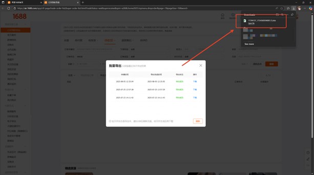 Step 2: Click ‘导出当前条件’ to view exported purchases