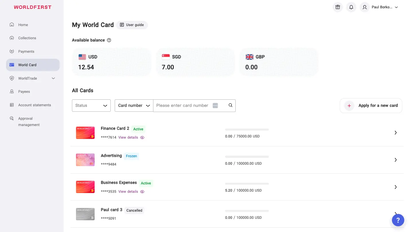 For instance, if you’ve collected funds from your customers in USD, you can hold the funds in your World Account to make USD purchases through your World Card.