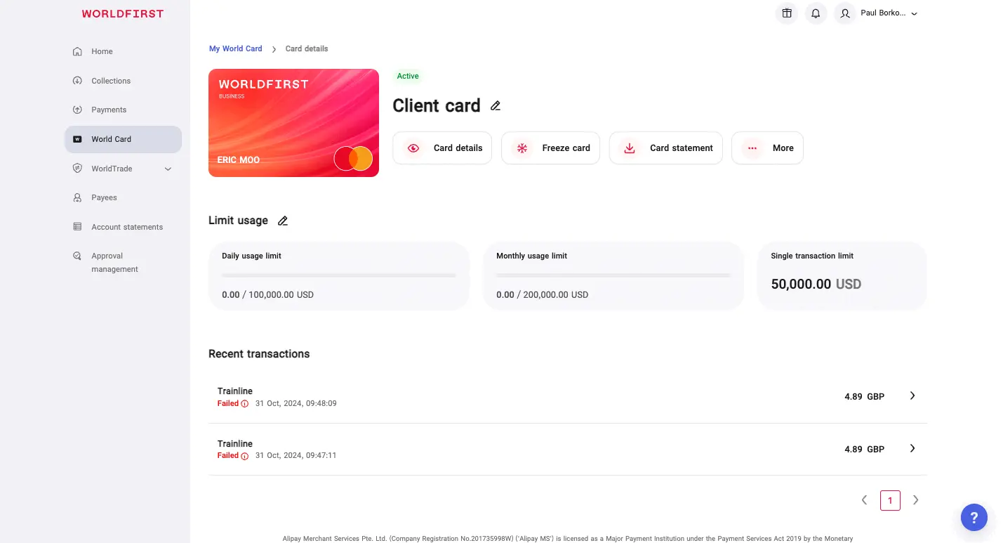 The appeal of the World Card lies in its simplicity. If you already use a World Account to send, receive and hold funds in multiple currencies, you can use your existing funds to make business payments directly with your World Card at competitive exchange rates.
