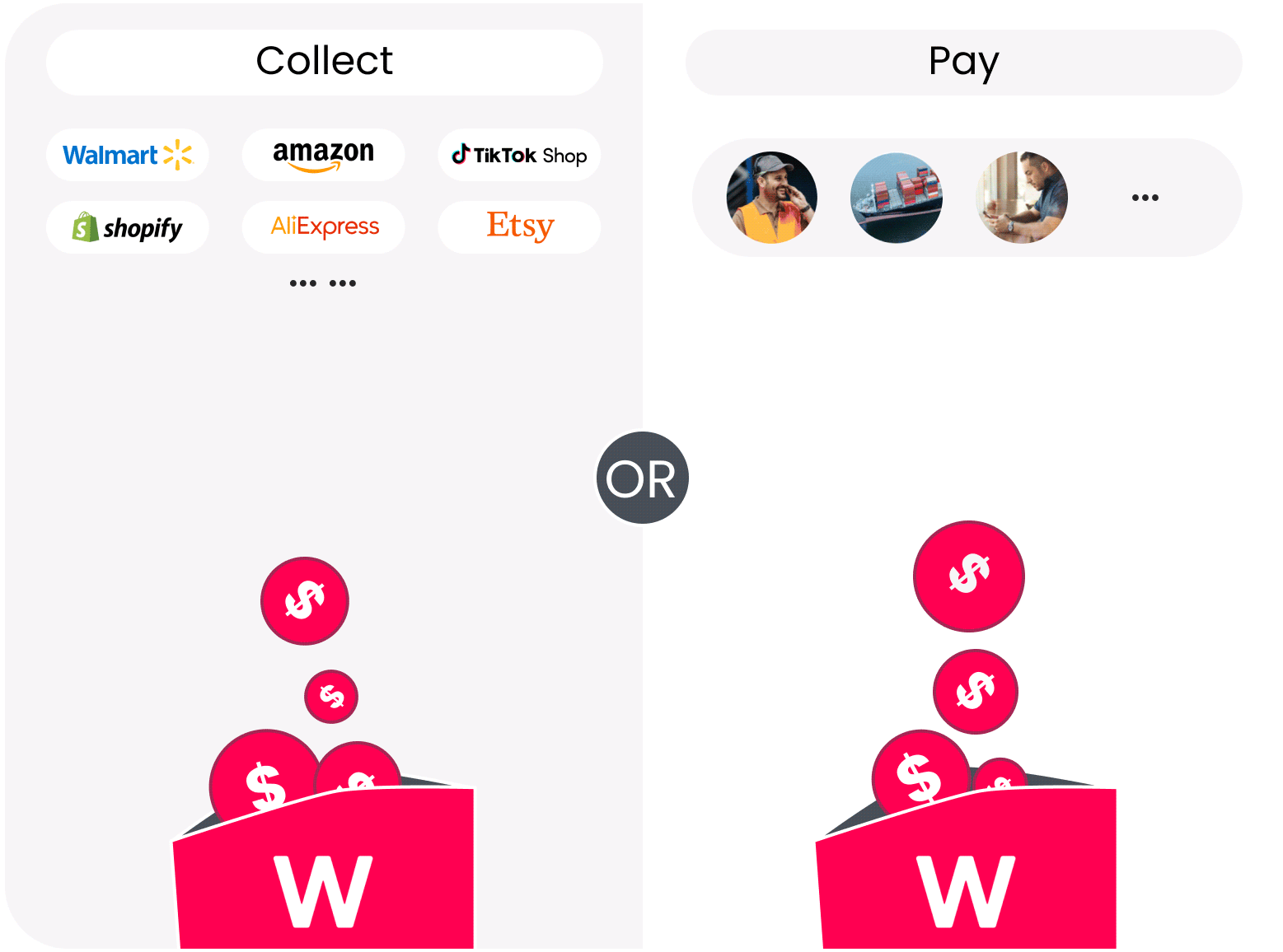 Easy collections from over 130 marketplaces, including Amazon, TikTok Shop, Walmart, and AliExpress. Manage all your marketplace earnings in one account.