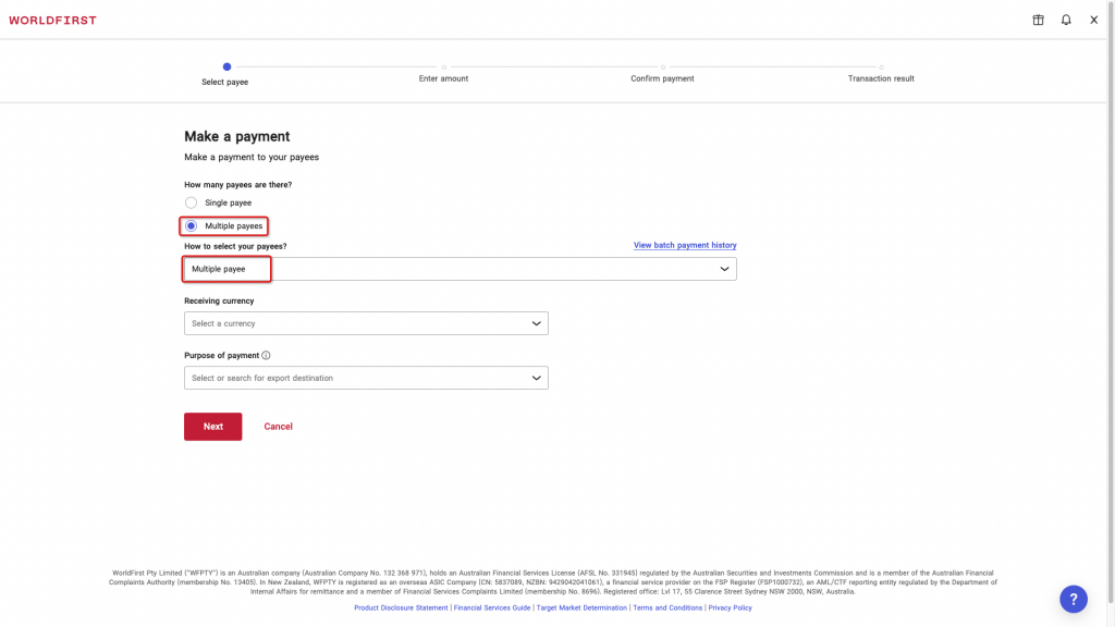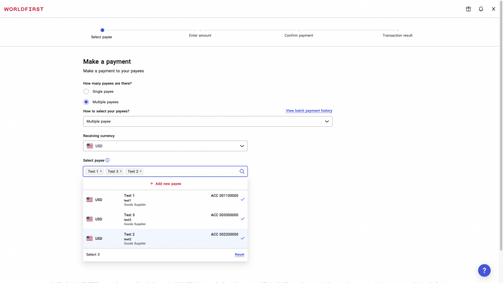 Select ‘Multiple payees’ under ‘How many payees are there?’ and choose ‘Multiple payee’ under ‘How to select your payees?’