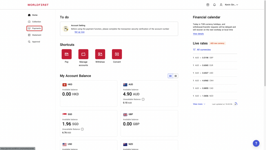 From your World Account dashboard, click on ‘Payments’ on the left side navigation bar.