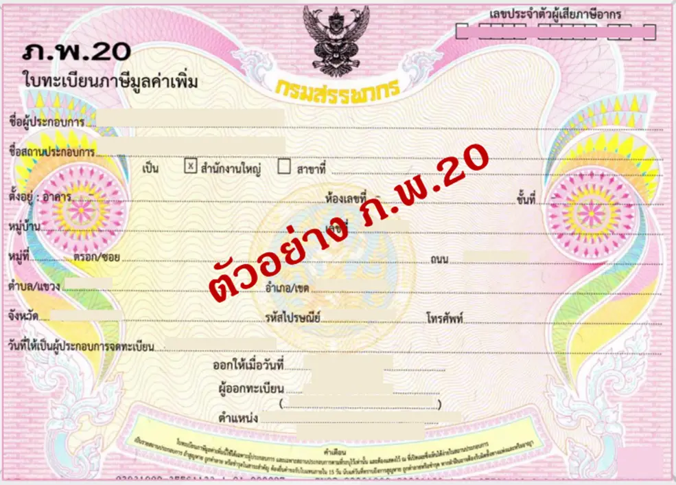 - Color VAT Registration Certificate (ภ.พ.20 – สำเนาสี)