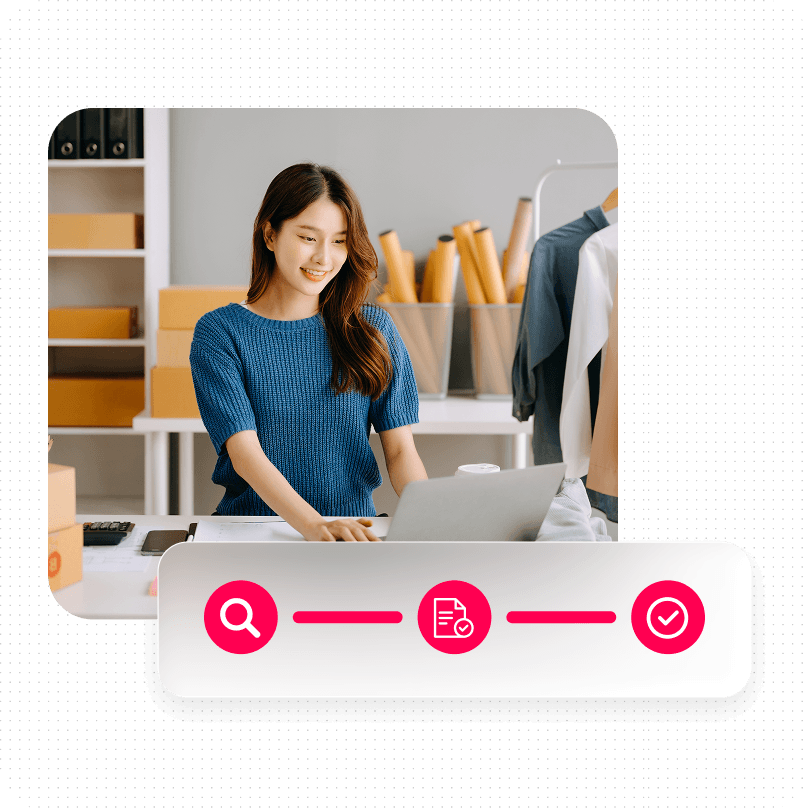 Elektronik İşletmenizi Tanıyın (eKYB) kontrollerimizi ve uyumluluk risk kontrol motorumuzu kullanarak, bir yandan küresel uyumluluk ve güvenliği sağlarken, diğer yandan küresel satıcıları hızla inceleyin, doğrulayın ve sisteme kaydedin.
