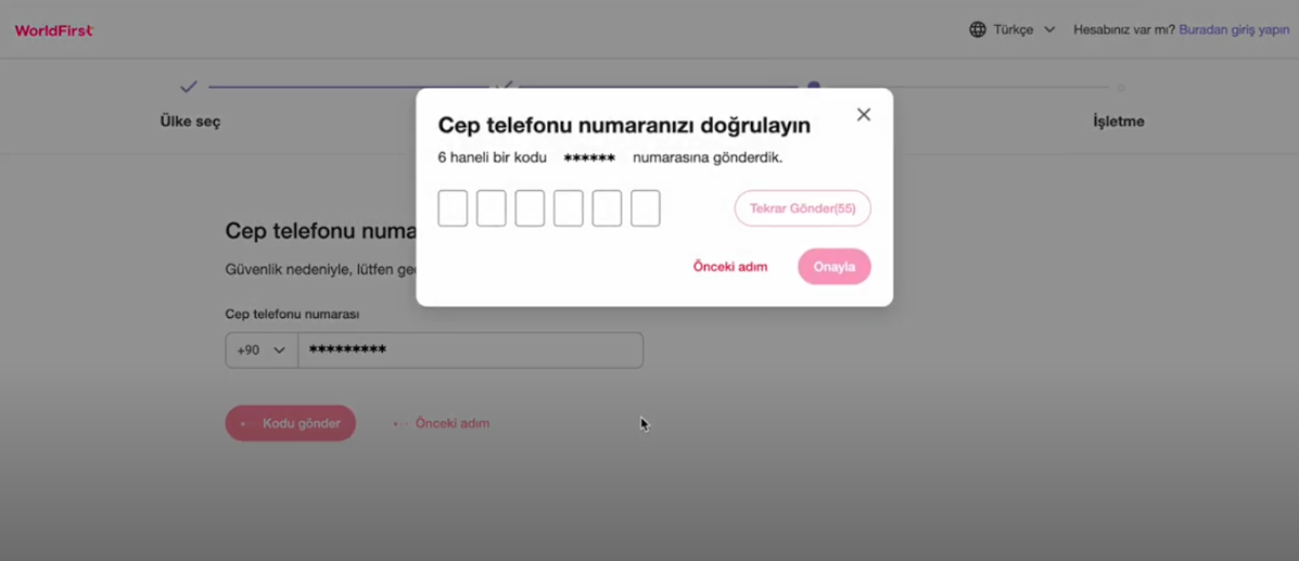 - Sonraki adımda, telefon numaranız ile doğrulanma sağlanılacak.