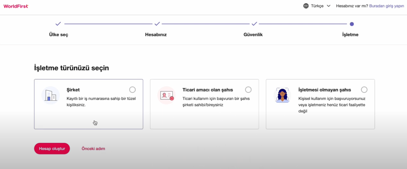 - Eğer bir işletme sahibiyseniz, lütfen “Bir işletme olarak World Hesab nasıl açılır?” rehberini inceleyin.
