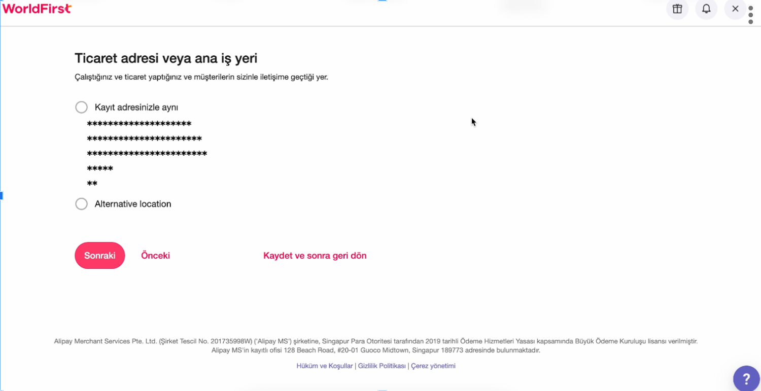 - Bu adımda, işletme adresinizi girmeniz istenecek. Eğer işletme adresiniz kayıtlı adresinizle aynıysa, bu aşamayı geçerek devam edebilirsiniz.