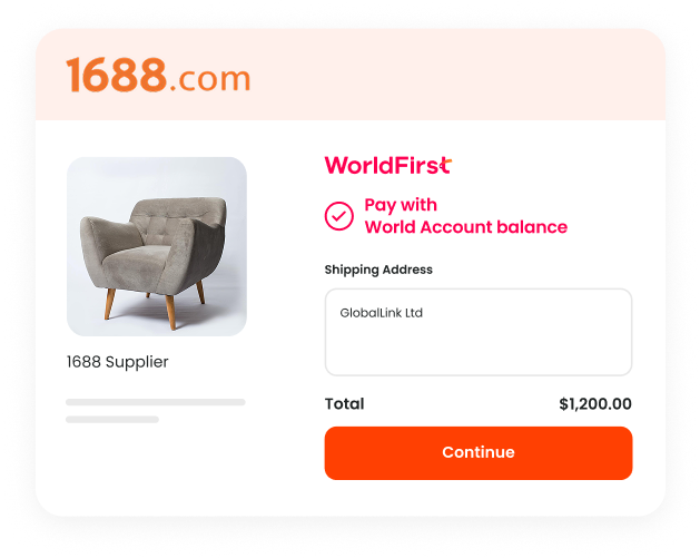 WorldFirst hesabınıza 1688 hesabınızı bağlayın, tedarikçilerinize anında ödeme yapın.