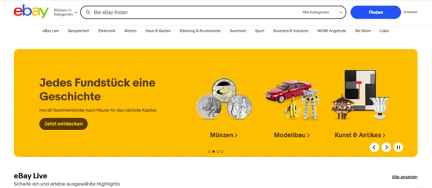 Launched in Germany in 1999, eBay.de2 is similar to Amazon in that it sells everything: electronics, clothing, sports equipment, furniture and more. eBay is a ‘classifieds’ platform, which means users can post short ads to buy, sell, rent or trade goods and services.