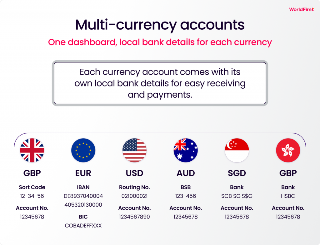 - No UK address required: Providers issue local bank details (sort code and account number for GBP, IBANs for EUR, etc.) without demanding a British utility bill or tenancy agreement