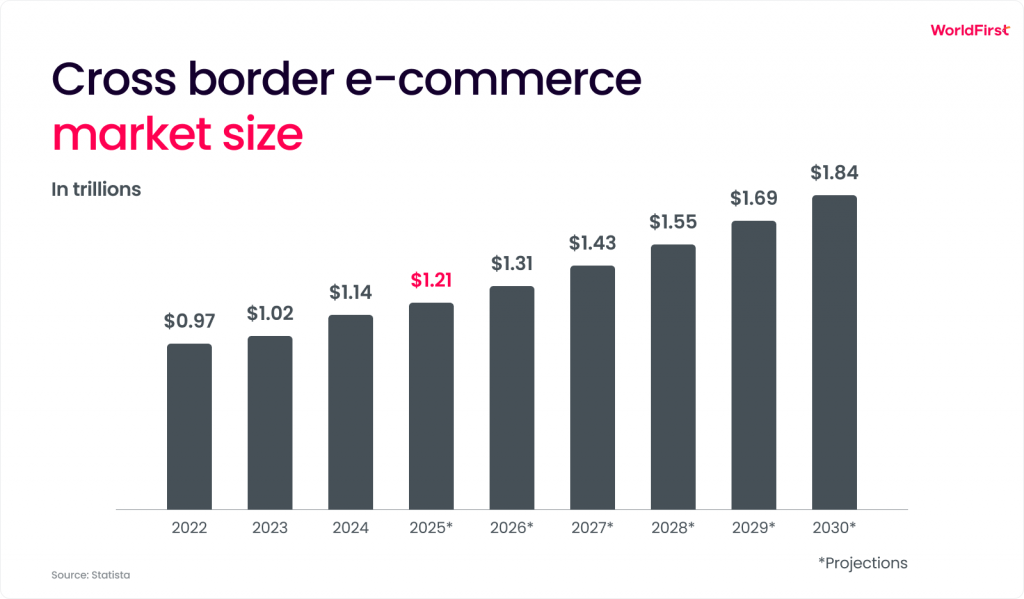 Global e-commerce offers an enormous opportunity. Just in 2024, worldwide online retail (B2C) sales reached about USD 6 trillion, greater than the GDP of Germany.