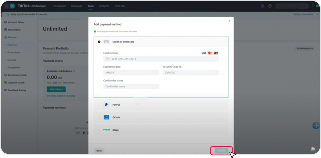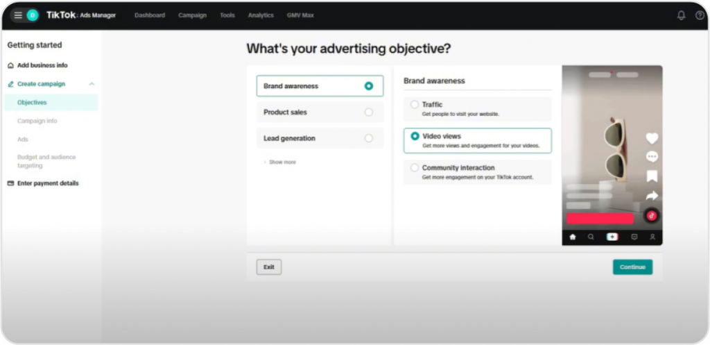 Sign in to TikTok Ads Manager using your TikTok business account and go to the homepage at ads.tiktok.com