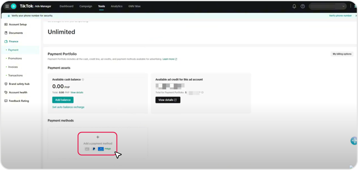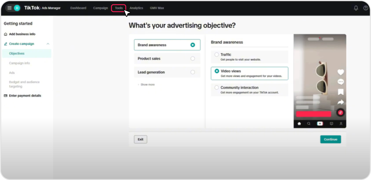 Sign in to TikTok Ads Manager using your TikTok business account and go to the homepage at ads.tiktok.com