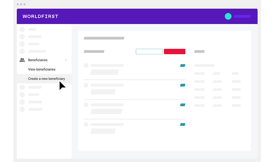 Click on ‘Beneficiaries’ and select ‘Create a new beneficiary’ on the left-hand menu.