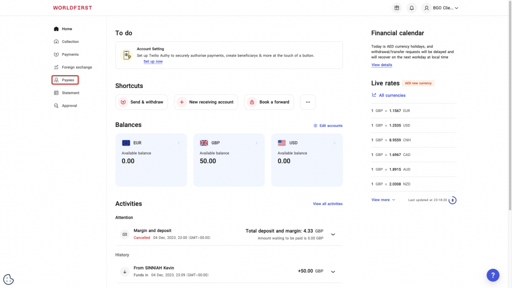 Navigate to ‘Payees’ on the left side navigation bar.