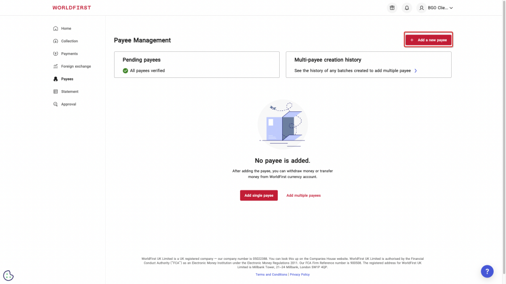 Click on ‘Add’ under ‘Single payee’.