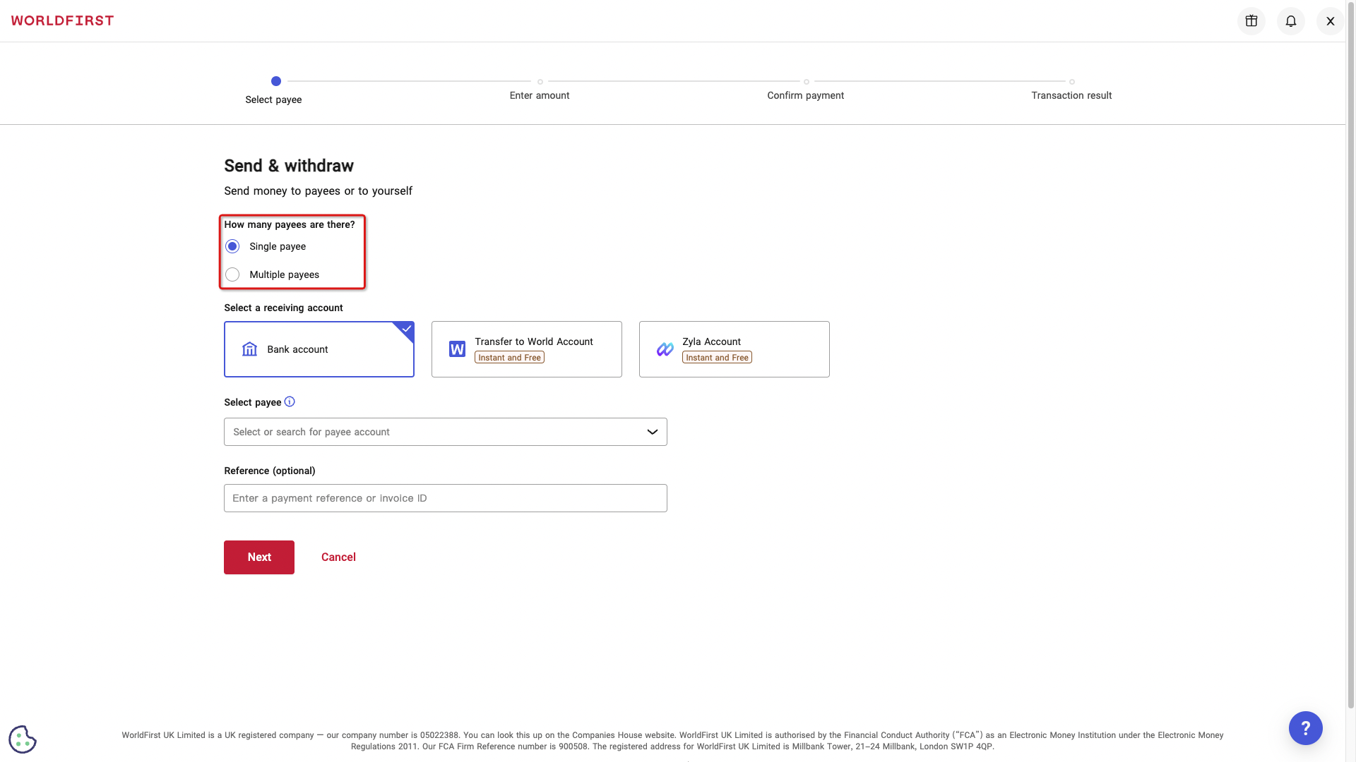 Select whether you are making a payment to a single payee or paying multiple payees.
