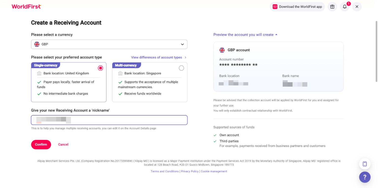 - Sau đó, nhấp vào “Quản lý tài khoản (Manage Accounts)” > “Thêm tài khoản nhận tiền mới (Add a New Receiving Account)”. Sau đó, bạn có thể chọn loại tiền tệ cho Tài khoản nhận tiền