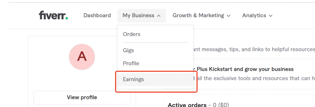 - Điều hướng đến “Doanh nghiệp của tôi (My business)”, sau đó chọn “Thu nhập (Earnings)”