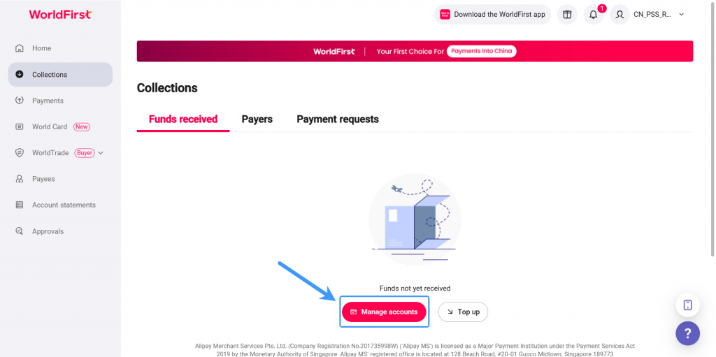 - Trên bảng điều khiển World Account của bạn, đi đến thẻ “Thu tiền (Collection)”