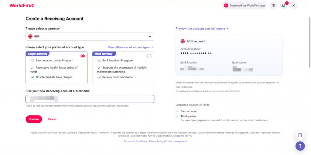 - Sau đó, nhấp vào “Quản lý tài khoản (Manage Accounts)” > “Thêm tài khoản nhận tiền mới (Add a New Receiving Account)”. Sau đó, bạn có thể chọn loại tiền tệ cho Tài khoản nhận tiền