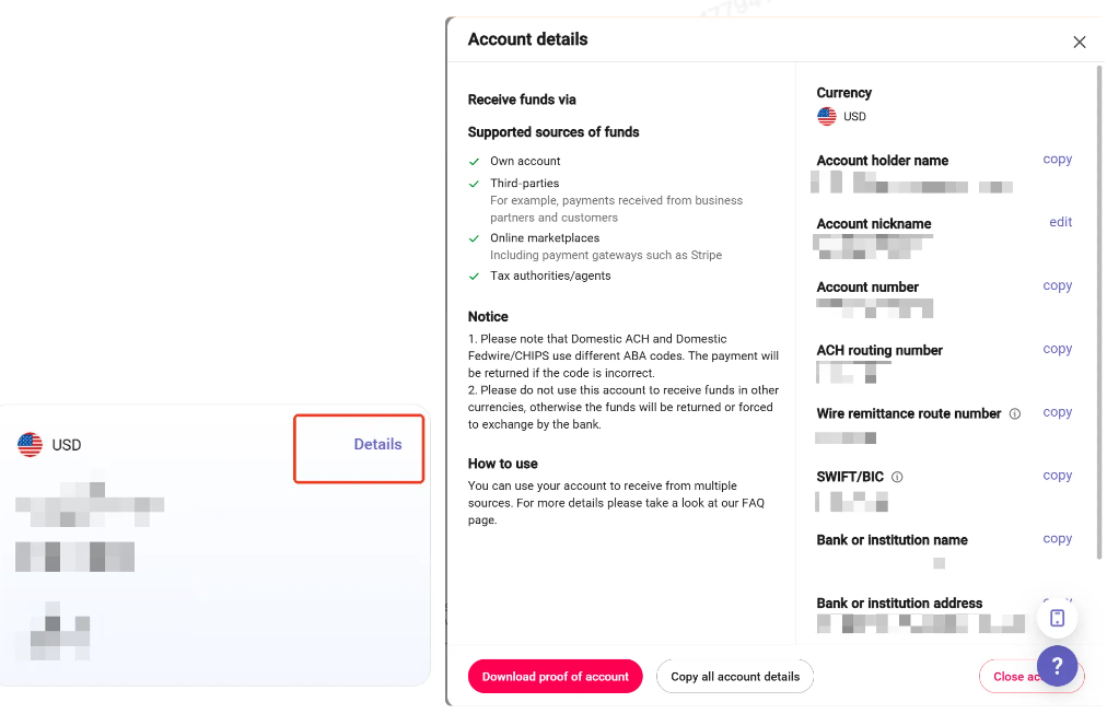 Sau khi thiết lập tài khoản, bạn có thể nhấp vào “Chi tiết (Details)” để xem thông tin chi tiết tài khoản