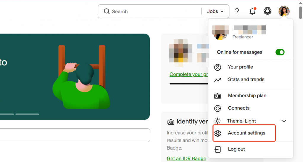 - Đăng nhập vào Upwork và chọn “Cài đặt (Settings)”