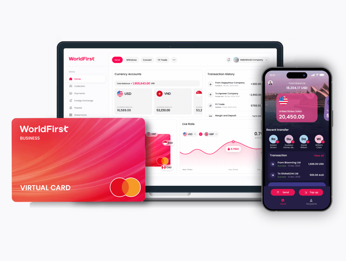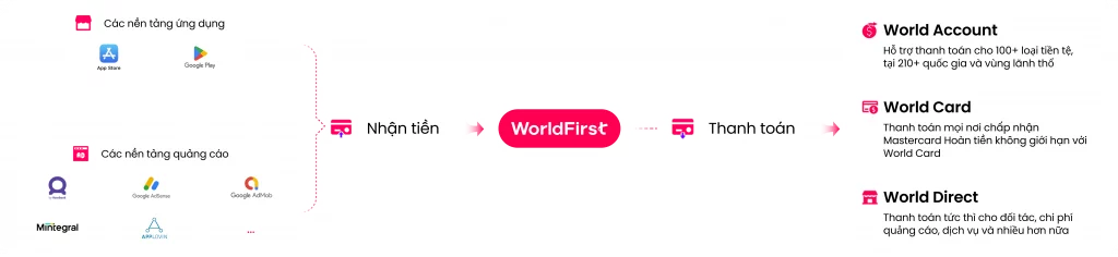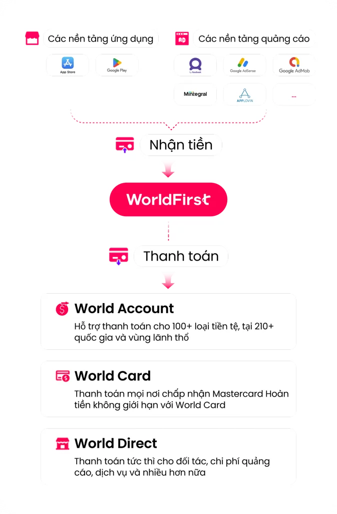 Giải pháp toàn diện: Tài khoản đa tiền tệ World Account, nền tảng đối tác toàn cầu World Direct và thẻ thanh toán World Card. Tối ưu hiệu quả dòng tiền, giúp bạn tập trung vào phát triển sản phẩm.